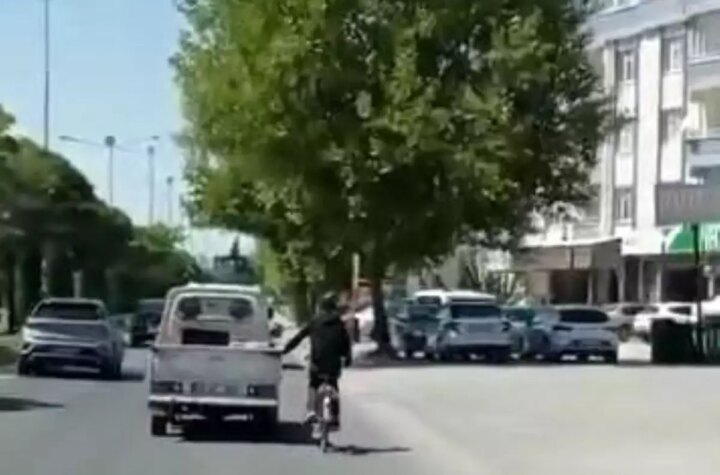 Elazığ'da bir bisiklet şoförü, kamyonetin ardına tutunarak trafiği tehlikeye soktu. O anlar cep telefonu...