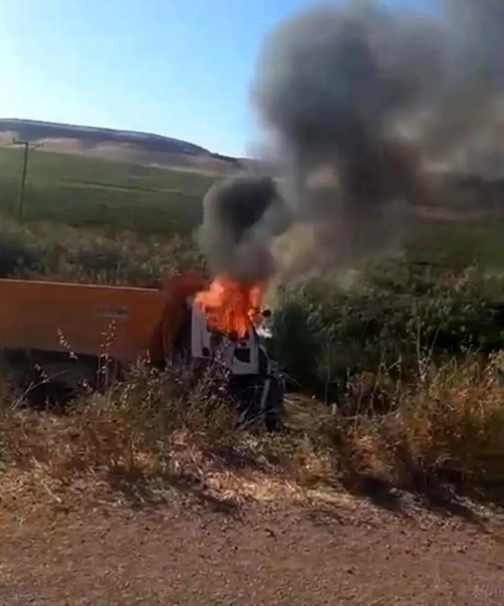 Diyarbakır’ın Çınar ilçesinde devrilen kamyonun şoförü yanarak hayatını kaybetti.