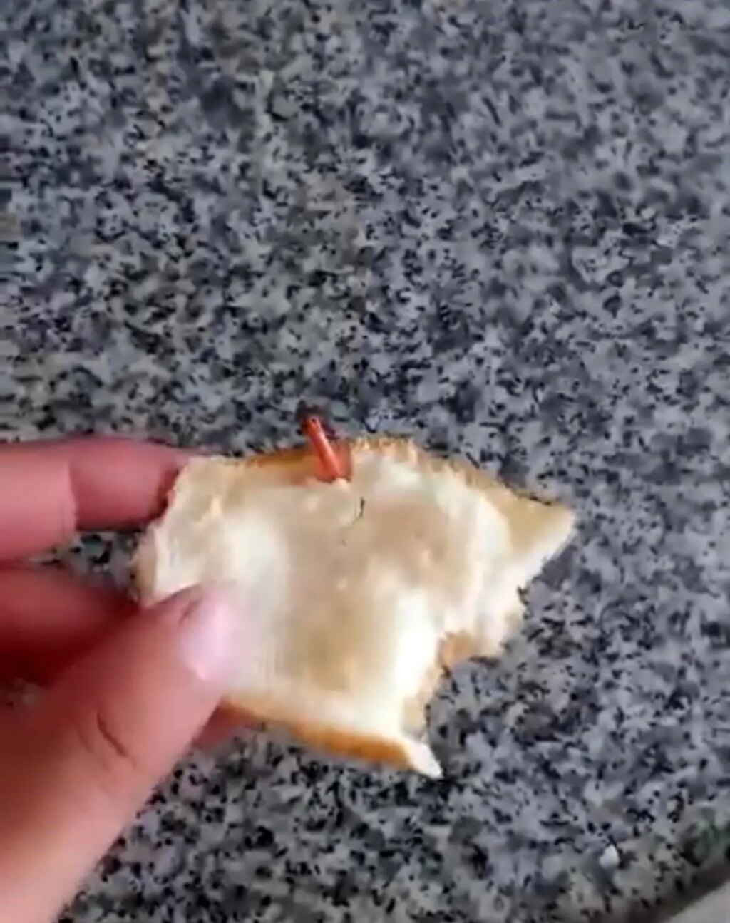 Diyarbakır’da bir vatandaş, marketten aldığı somun ekmeğin içinde kablo kesimi çıkınca verdiği yansıyı cep telefonuyla kayda aldı.