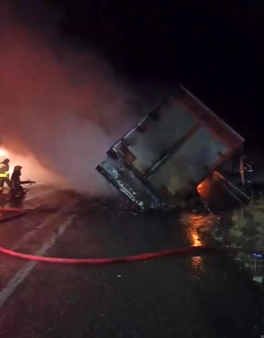 Edinilen bilgilere nazaran, dün gece saatlerinde ilçenin Oğlaklı Mahallesi’nde şoförünün direksiyon hakimiyetini kaybettiği tır, yol kenarına devrilerek alev aldı. Şoför, hafif formda yaralandı.