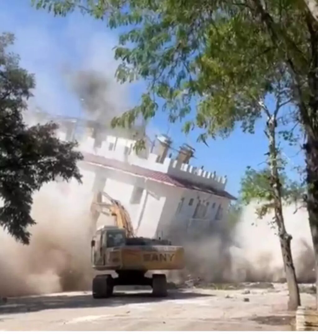 Yıkımın akabinde bölgede enkaz kaldırma çalışmalarına başlanırken, bina etrafında güvenlik tedbirleri alındı.