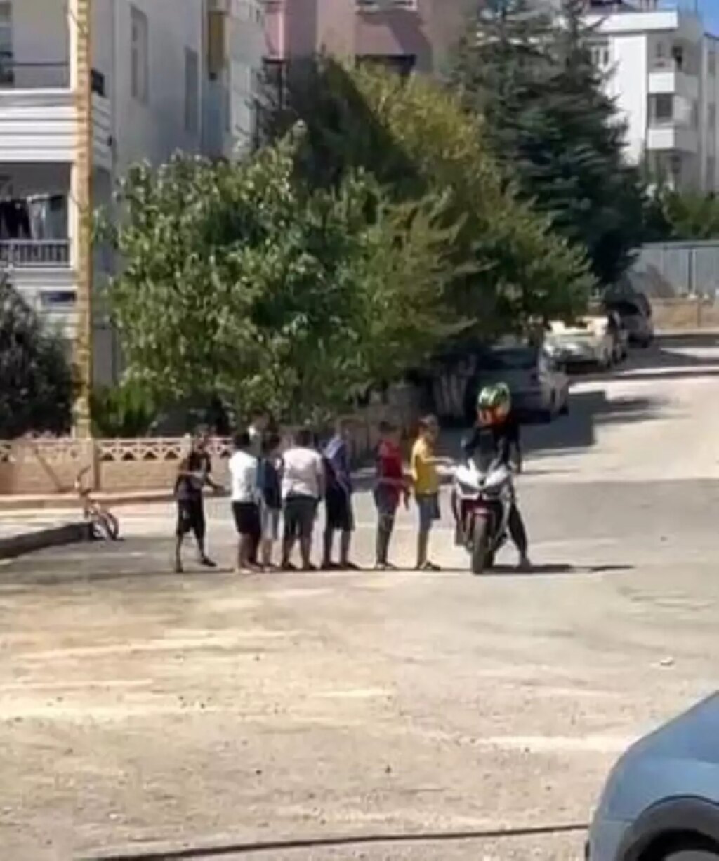 Ulukent Mahallesi’nde bir motosiklet şoförü, önünü kesen 8 çocuğu kırmayarak durdu. Çocuklar sıraya girerek motoru inceledi ve şoförün orta gaz vermesiyle keyifli anlar yaşadı. O anlar ise uzaktan cep telefonu kamerasıyla kaydedilerek anbean görüntülendi. – ELAZIĞ