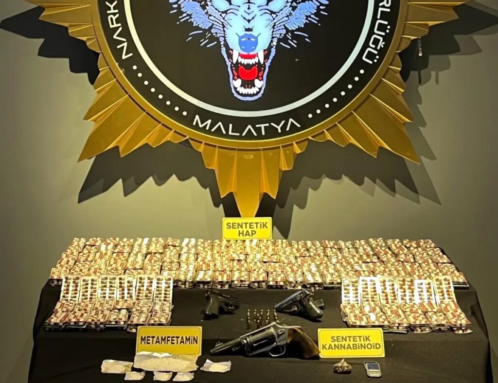 Malatya İl Emniyet Müdürlüğü Narkotik Suçlarla Mücadele Şube Müdürlüğü takımlarınca yürütülen çalışmalar kapsamında, Battalgazi ilçesine bağlı Fırat, Sarıcıoğlu ve Çamurlu mahallelerinde belirlenen adreslerde operasyon düzenlendi. Yapılan aramalarda 11 bin 188 adet sentetik ecza hap, 75 gram metamfetamin, 57.8 gram sentetik kannabinoid ve 4 ruhsatsız tabanca ele geçirildi.