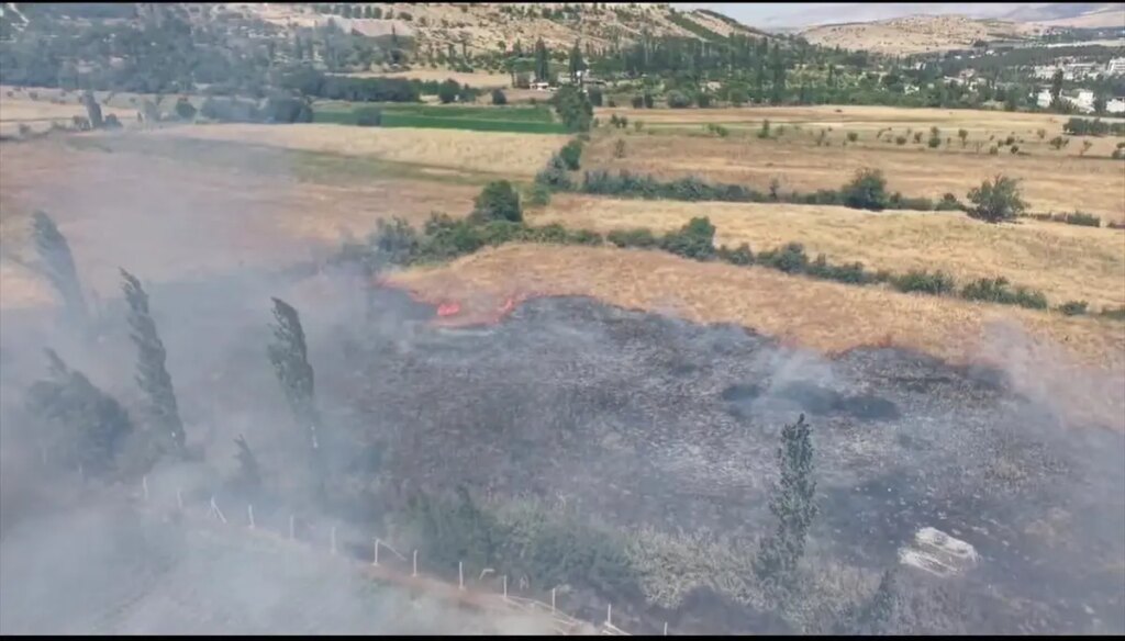 Doğu Mahallesi’nde şimdi belirlenemeyen bir nedenle arazi yangını çıktı.