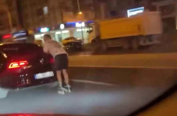 Diyarbakır-Şanlıurfa kara yolunda bir patenli genç, bir aracın gerisine tutunarak kilometrelerce ilerledi. Tehlikeli anlar...